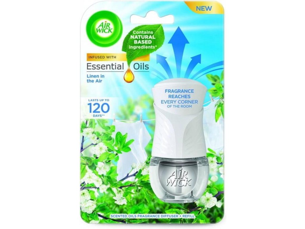 Elektrický osvěžovač vzduchu AirWick Electric komplet Life Scents Prádlo ve vánku 19 ml provoní váš dům příjemnou vůní. Jednoduché použití, kdy osvěžovač vložíte do zásuvky a pak už si jen užíváte provoněný dům. Díky moderní technologii vydrží až 75 dní a provoní menší i větší místnosti. Užijte si příjemnou pohodu domova.