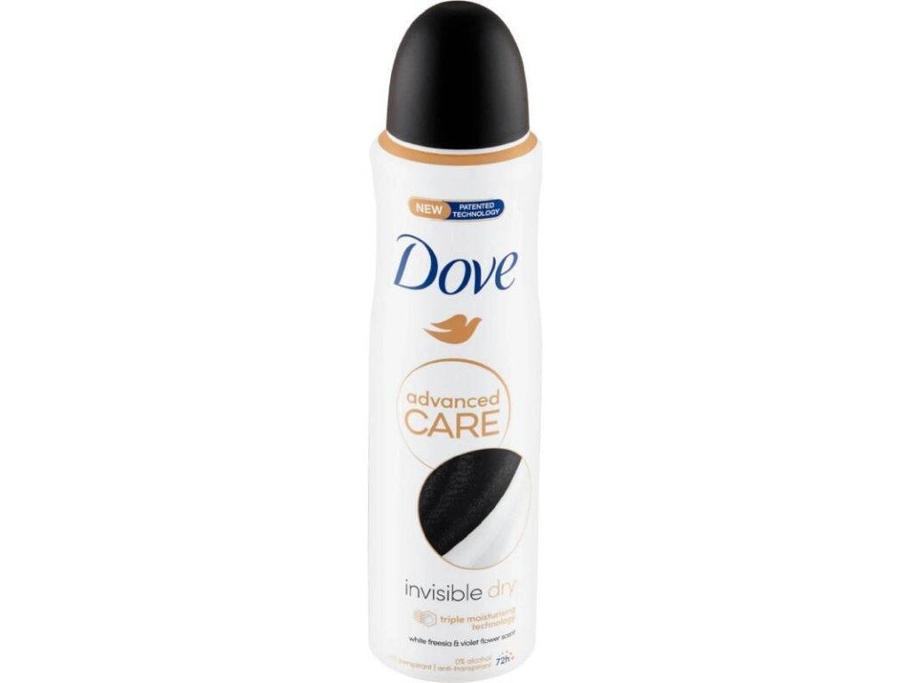Dove Advanced Care antiperspirant sprej Invisible Dry poskytuje 72hodinovou ochranu, svěží podpaží, a navíc bez skvrn na oblečení. Nosíte ráda zářivé barvy, ale bojíte se, že se na vašem oblečení objeví bílé skvrny Antiperspirant sprej Dove Invisible Dry je první antiperspirant, který byl vyvinut tak, aby nezanechával bílé stopy na stovce barev. Díky němu si můžete dovolit nosit šaty jakékoliv barvy na jakoukoliv příležitost, protože budete mít jistotu, že se na nich neobjeví žádné bílé skvrny. S antiperspirantem ve spreji Dove Invisible Dry si budete moci dovolit nosit ty nejbarevnější šaty a zapomenout na skvrny od deodorantu jednou provždy.