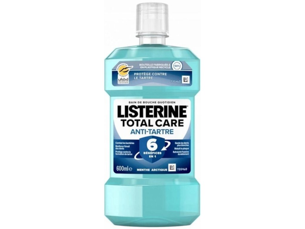 Listerine Total Care je pokročilá ústní voda, která nabízí komplexní ochranu proti zubnímu kameni. Složení tohoto produktu účinně bojuje proti zubnímu plaku a zabraňuje jeho usazování, čímž pomáhá udržovat zdravý a čistý úsměv. Díky svým antibakteriálním vlastnostem odstraňuje tekutina Listerine Total Care škodlivé bakterie, které jsou hlavní příčinou zubního kazu a onemocnění dásní. Poskytuje také dlouhotrvající pocit svěžesti a neutralizuje nepříjemný dech. Listerine Total Care je nenahraditelným partnerem při péči o ústní hygienu. účinný při používání ráno a večer chrání před zubním povlakem ničí bakterie v mezizubním prostoru sytě mátová chuť